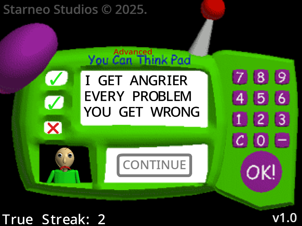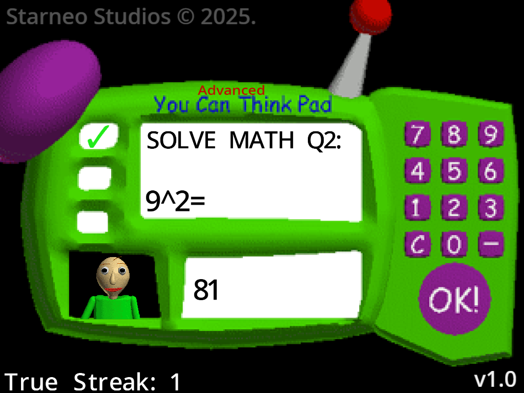 This mod has the classic You Can Think Pad, thing that you solve problems on Baldi's Basics, but advanced! Yo can solve square root, getting power of numbers and more! This mod will get updates.